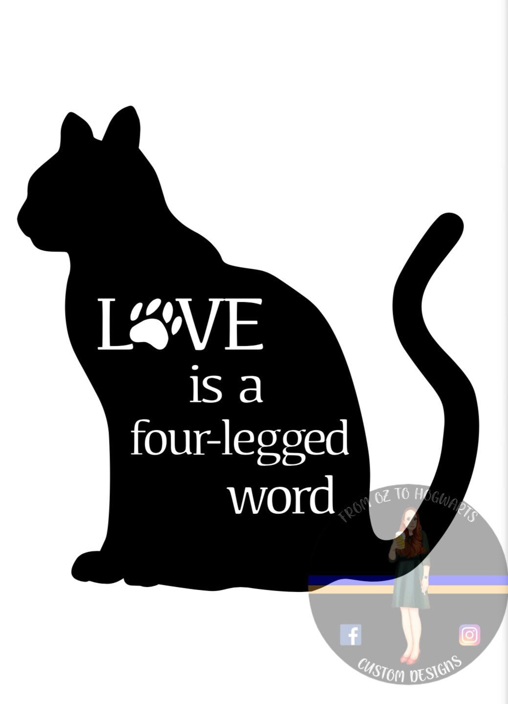 Cat mom/Cat dad car decal. Love is absolutely a four-legged word, when it comes to people with a cat or two :) If you’d like this decal in a color other than white, please send a note with your order and we’ll work together to get you the color that you’d like! Free shipping but no tracking number will be provided. Your order will show as shipped once it’s on its way.
